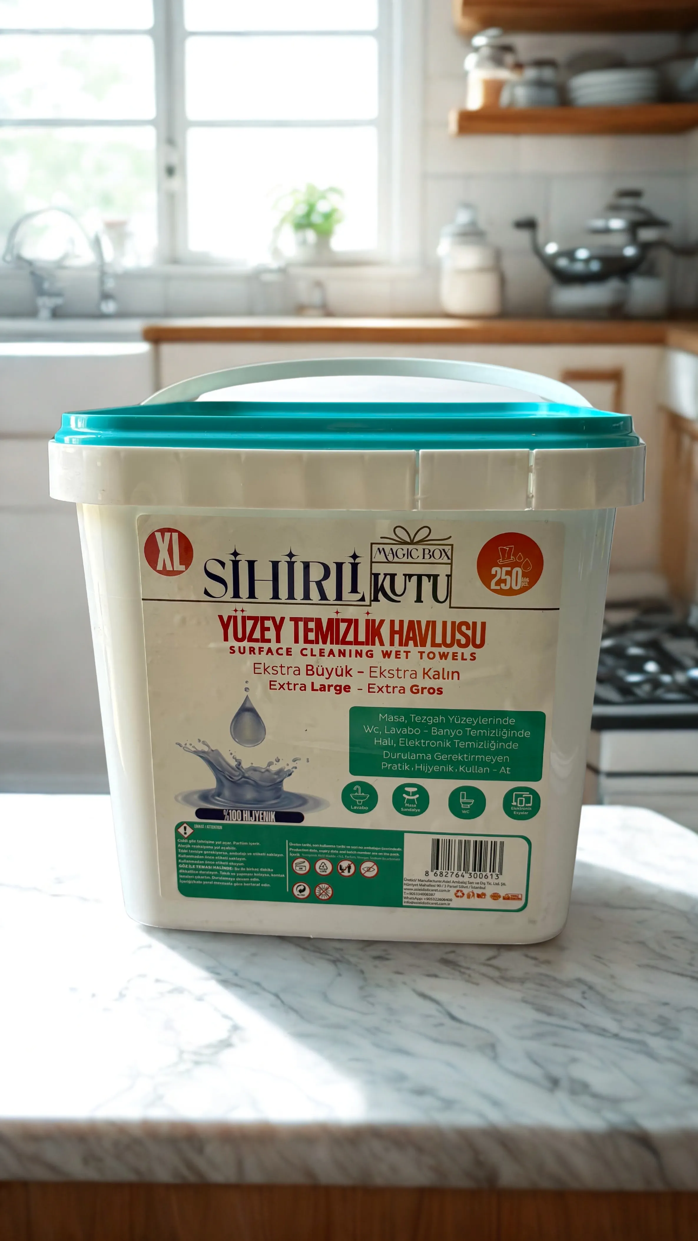 Sihirlikutu Magicbox Islak Yüzey Temizlik Havlusu 250 Yaprak Yüzey Temizlik Havlusu, evinizin her köşesinde mükemmel temizlik sonuçları elde etmeniz için özel olarak tasarlanmış bir temizlik aracıdır.; ; Bu havlu, dayanıklı ve emici özelliklere sahip özel bir malzeme kullanılarak üretilmiştir, böylece farklı yüzeylerde etkili bir temizlik sağlar.; ; Özel mikrofiber dokusu, yüzeyleri nazikçe temizlerken toz, kir ve lekeleri hızla çeker.; ; Ayrıca, bu havlu su emme kapasitesiyle öne çıkar, böylece yüzeylerde iz bırakmadan hızla kurulama sağlar.; ; Çiziksiz ve lekesiz temizlik sağlayan bu havlu, ahşap, cam, seramik, paslanmaz çelik ve daha birçok yüzeyde güvenle kullanılabilir.; ; Yüzey Temizlik Havlusu aynı zamanda çevre dostudur.; ; Yeniden kullanılabilir özelliği sayesinde tek kullanımlık ürünlere alternatif sunar, bu da atık miktarını azaltmaya yardımcı olur.; ; Ayrıca, makineyle yıkanabilir ve uzun ömürlüdür, böylece uzun süre boyunca etkili temizlik sağlar.; ; Ev temizliği hiç bu kadar kolay olmamıştı.; ; Yüzey Temizlik Havlusu ile her temizlik işlemi hızlı, etkili ve çevre dostu bir deneyim haline geliyor.; ; Günlük temizlik rutininizin vazgeçilmez bir parçası olacak.; ; Bez Özellikleri: %30 Viskon + %70 PES Boyutları: 16,5cm x 19cm Ortalama Ağırlık: 60 g/m2;